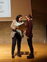Übergabe des Dr. Katharina Sailer-Preises durch Präsident Prof. Dr. Udo Hebel (Foto: Franziska Seitz)