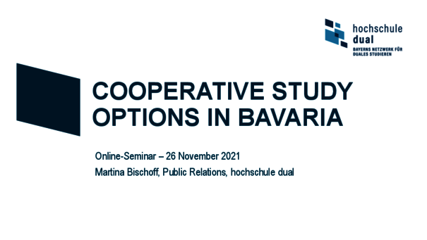 Cooperative study in Bavaria combines studying at a university of applied sciences (UAS) with practical training in a company or institution. There are two models: academic study with intensive in-company training, or academic study combined with vocational training. By now, about 370 cooperative study pro-grams or cooperative study options with more than 1.750 partner companies are available in Bavaria.