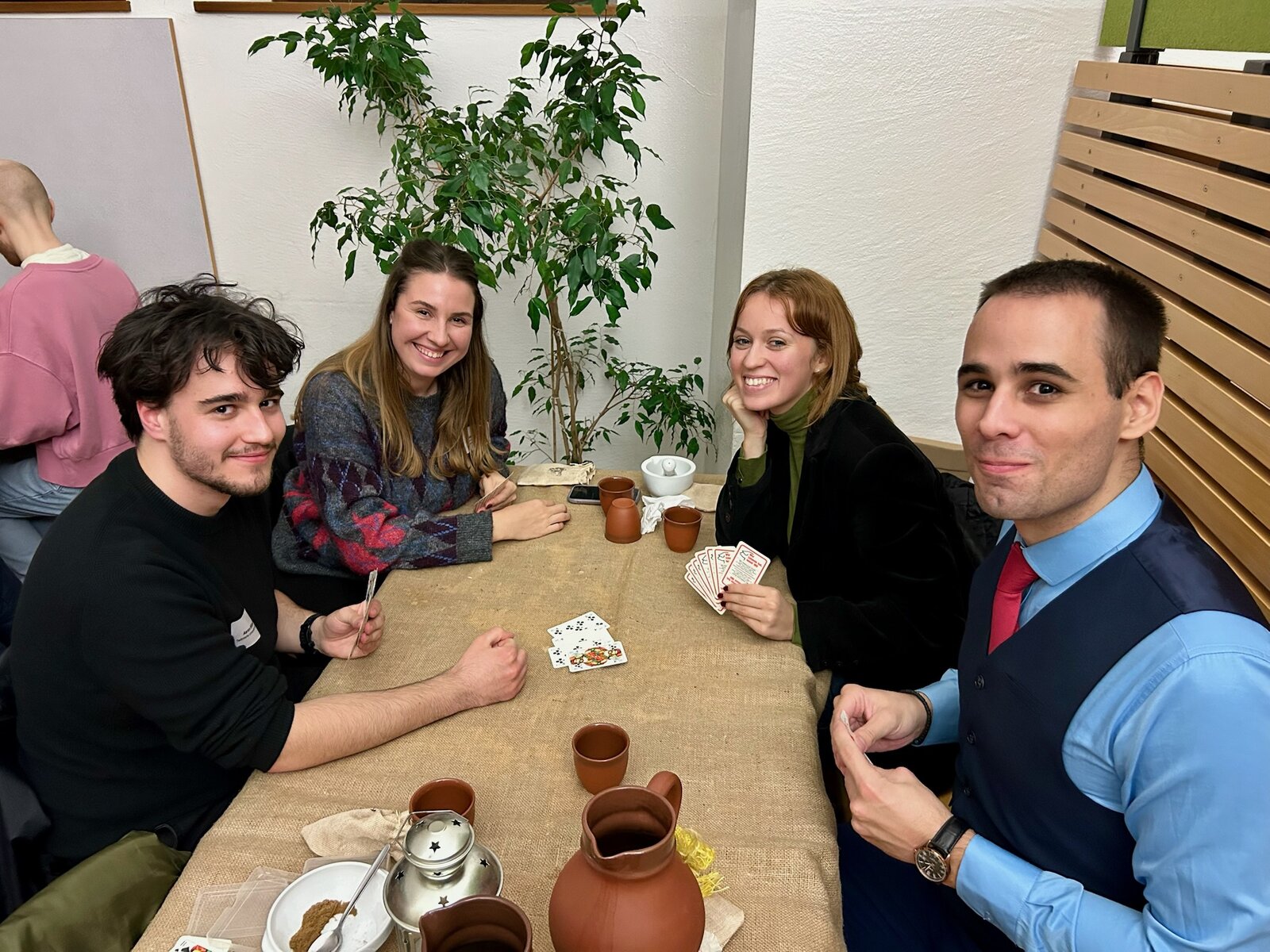 Der Samstag startete mit einem Spaziergang zur Universität durch die Passauer Altstadt. Das Vormittagsprogramm zu „Cross-cultural management and leadership“ wurde von Elisabeth Huber und Tuzienka Chenet Ugarte (Universität Passau) gestaltet. Die beiden Referentinnen vertieften das Thema der interkulturellen Kommunikation sowie Führung und luden die Teilnehmenden zur aktiven Mitarbeit ein. Am Nachmittag ergänzte ein Workshop zur Bewerbungspraxis das Seminarprogramm. Stefanie Wuchrer (Human Resources Business Consulting) gab praxisorientierte Hinweise für Bewerbungsprozesse und erläuterte typische Herausforderungen, die bei einer Bewerbung in Unternehmen zu beachten sind. Am Abend traf sich die Gruppe wieder in der Jugendherberge zu einem „Tavernenabend“, bei dem die Geförderten nach einem gemeinsamen Essen mittelalterliche Spiele spielten und sich dadurch näher informell kennen lernen konnten.