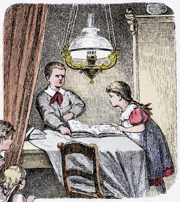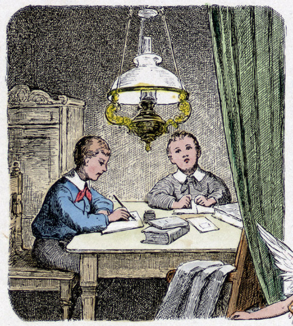 An dem Tisch bei Lampenschein