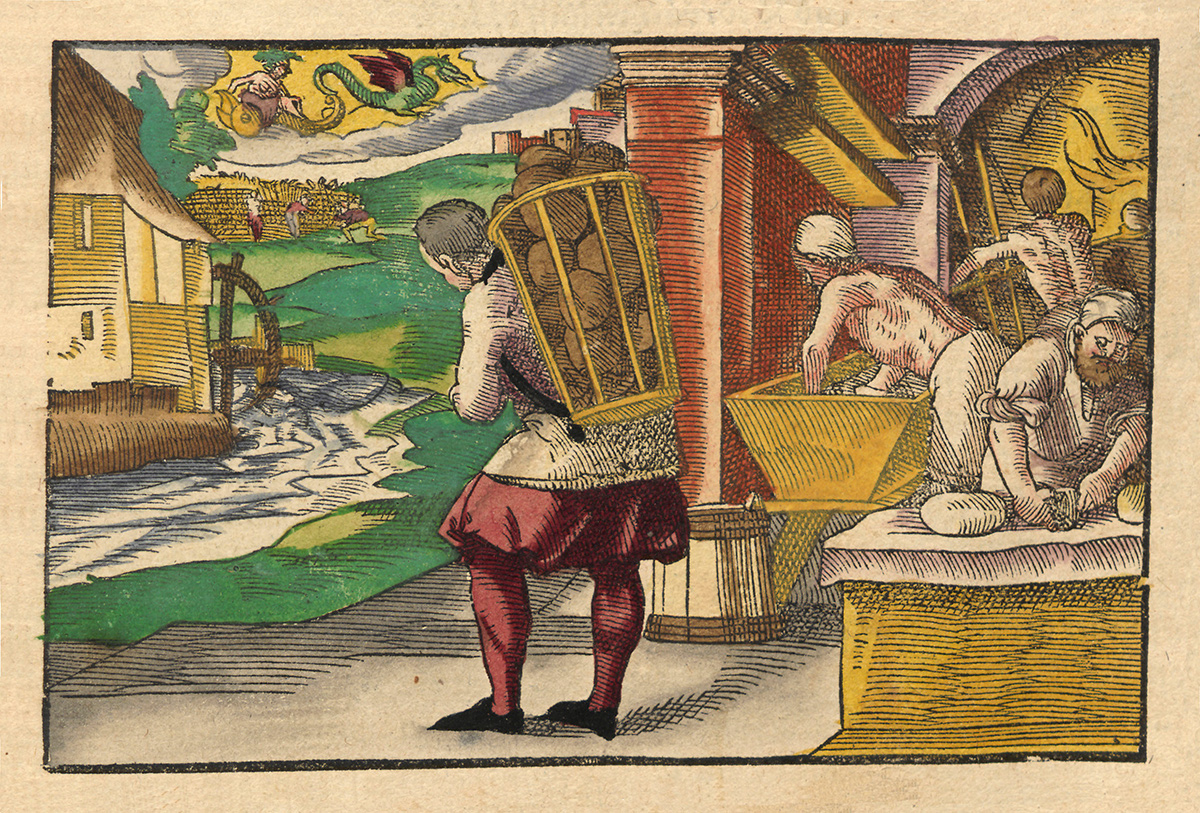 “Vom Brod-Backen” In: Francisci Philippi Florini Serenissimi ad Rhenum Comitis Palatini Principis Solisbacensis P. in Edelsfelden & Kirmreuth, Oeconomvs Prvdens Et Legalis. Oder Allgemeiner Klug- und Rechts-verständiger Haus-Vatter bestehend In Neun Büchern. Durch Herrn Johann Christoph Donauern. Nürnberg 1702. S. 1191. UB Regensburg.