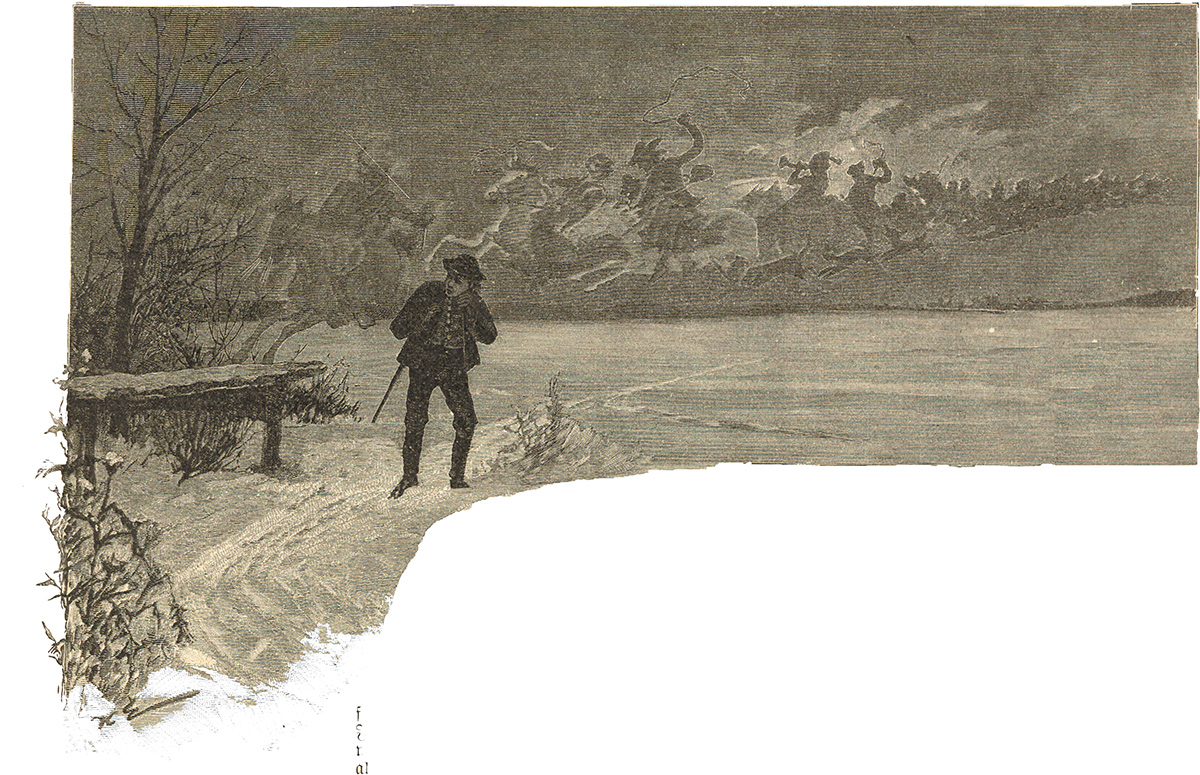 Illustration der „Wilden Jagd“ zu: Der Wunderglaube der Weihnacht. In: Die Gartenlaube 50 (1892,2) S. 831. UB Regensburg.