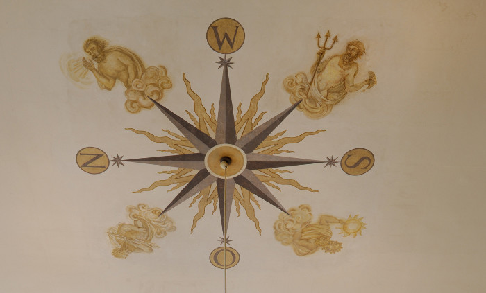 Im Rahmen dieser Tätigkeit konnte Franz Langlotz seiner Kunstbegeisterung ein Denkmal setzen. Er wurde mit der Errichtung des Wasserkraftwerks Mühltal beauftragt. Über die Familie von Finck, die als Vorläuferunternehmen die Isarwerke GmbH gegründet hatte und mit Franz von Stuck verwandt war, machte Langlotz Bekanntschaft mit dem berühmten Maler und Akademieprofessor. Er beauftragte 1924 den Schüler Stucks Gottlob Gottfried Klemm mit einem Deckengemälde der Kraftwerkswarte für 600 Rentenmark: Eine zentrale Windrose wird von den mythologischen Figuren Poseidon, Zeus, Aiolos und Helios als Personifizierungen der Naturgewalten Wasser, Blitz, Wind und Sonne unter Angabe der Himmelsrichtungen gerahmt. Eine derartige künstlerische Ausgestaltung eines Wasserkraftwerks ist in der Bundesrepublik einzigartig.