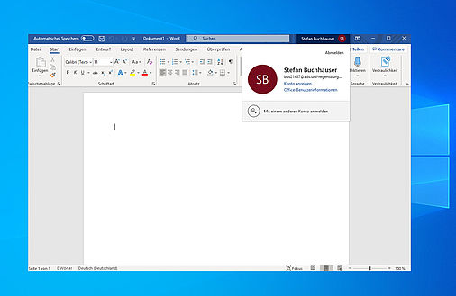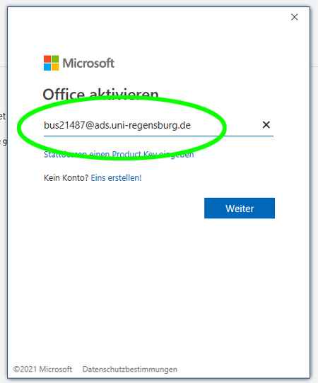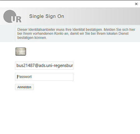 Bitte ihren persönlichen Account mit ……..@ads.uni-regensburg.de eingeben