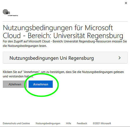 Nutzungsbedingungen "Annehmen"