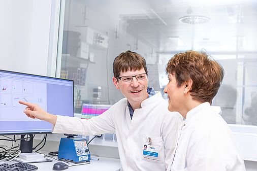 David H. leidet an Lymphdrüsenkrebs. Die Diagnose - ein diffus großzelliges B-Zell-Lymphom (DLBCL) – ist eine der häufigsten Formen von Lymphdrüsenkrebs und verläuft meist sehr aggressiv. Zur Behandlung hat der 48-Jährige mehrere Chemotherapien und zuletzt eine Hochdosis-Chemotherapie sowie eine Transplantation eigener Blutstammzellen erhalten. Die Behandlung schlug zunächst gut an, doch dann kam es zu einem Rückfall. „Herr H. erlitt ein Rezidiv und wurde zur Abklärung weiterer Therapiemöglichkeiten ans UKR überwiesen“, erklärt Professor Dr. Leo Hansmann, Oberarzt der Klinik und Poliklinik für Innere Medizin III des UKR sowie Inhaber der neuen Schwerpunktprofessur für Translationale Tumorimmuntherapie. „Wir empfahlen Herrn H. eine Behandlung mit CAR-T-Zellen, einer modernen zellulären Therapieform, mit der auch in fortgeschrittenen Erkrankungsstadien nach mehreren Vorbehandlungen noch Aussicht auf Heilung besteht.“ Die CAR-T-Zell-Therapie ist eine Form der Immuntherapie, bei der das körpereigene Abwehrsystem derart modifiziert wird, dass es sich gegen die Tumorzellen richtet. Dazu werden dem Patienten körpereigene Abwehrzellen entnommen, genetisch verändert und wieder verabreicht. Neben dem DLBCL sind andere Formen der Lymphome, die Akute Lymphatische Leukämie und das Multiple Myelom Erkrankungen, für die diese Art der Immuntherapie auch in fortgeschrittenen Stadien als vielversprechende Therapieoption bereits in der Routine zur Verfügung steht. „Im Fall von David H. war die Behandlung erfolgreich, und die Lymphomerkrankung konnte zurückgedrängt werden. Aktuell sind bei dem Patienten keine bösartigen Zellen mehr nachweisbar“, resümiert Professor Hansmann.