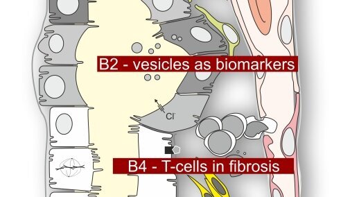 B2 will address three specific aims. We will (i) establish new prognostic biomarkers in urinary vesicles to detect and predict early changes in renal function (vesicular albumin and vesicular podocalyxin), (ii) identify additional tagging proteins in urinary vesicles to gain insights into the types and state of the originating cells, and (iii) clarify the role of extracellular vesicles for intra-renal communication pathways. We will use a broad array of in vivo and in vitro methods and will exploit data from large population-based study groups, taking advantage of the joint expertise on the two PIs in renal (patho-) physiology and epidemiology/statistics, respectively.