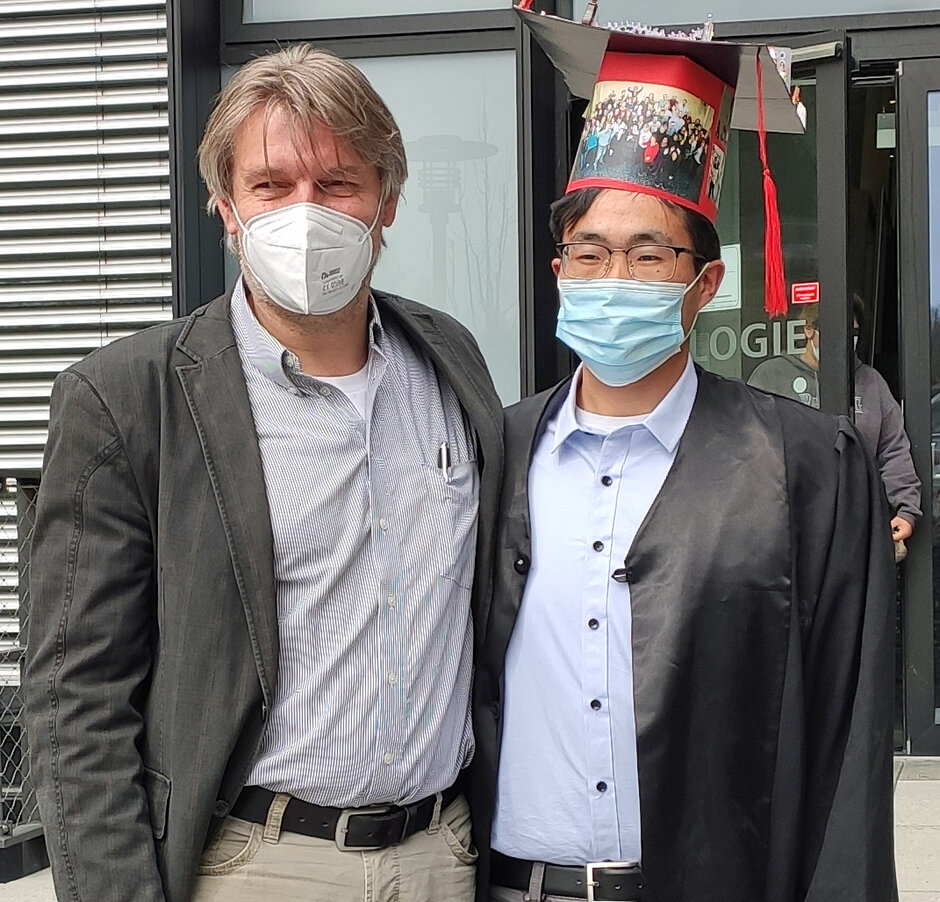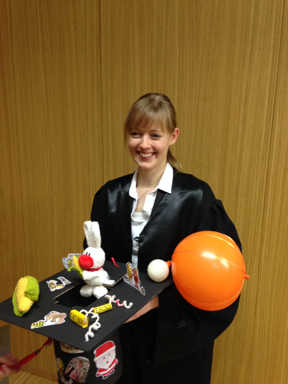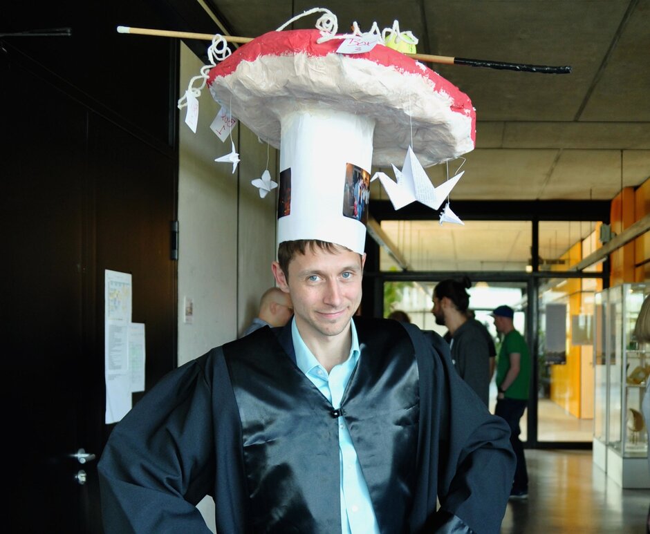 Another happy PhD graduate and his hand-knitted doctoral hat.