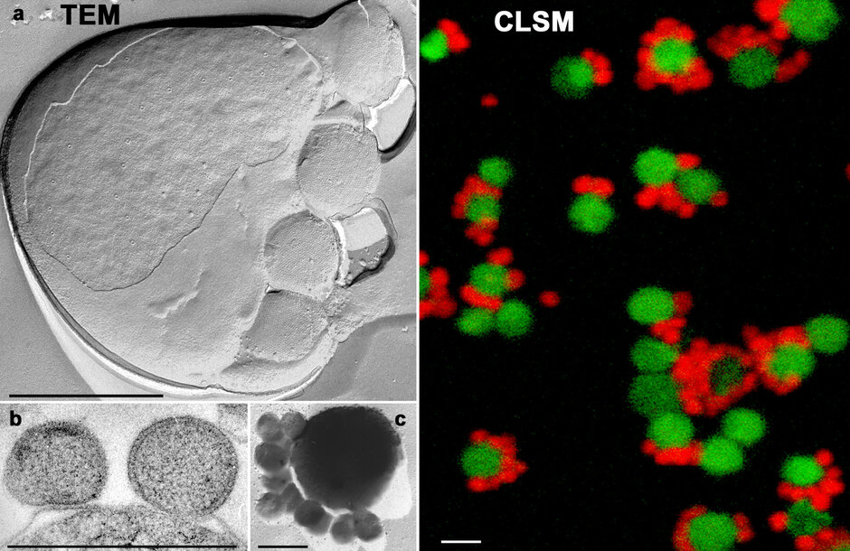 The intimate association of Ignicoccus hospitalis and Nanoarchaeum equitans is a microbial community solely formed by archaeal cells. This fascinating symbiosis was first isolated and cultivated under laboratory conditions in the Institute of Microbiology at the University of Regensburg. While I. hospitalis can be grown also in pure culture, proliferation of N. equitans cells is strictly dependent on an assocation with I. hospitalis cells. N. equitans is one of the smallest living cells known. We are studying this intriguing archaeal community to answer question that concern the intermembrane system and energy production of how N. equitans can thrive as a minimalistic cell.