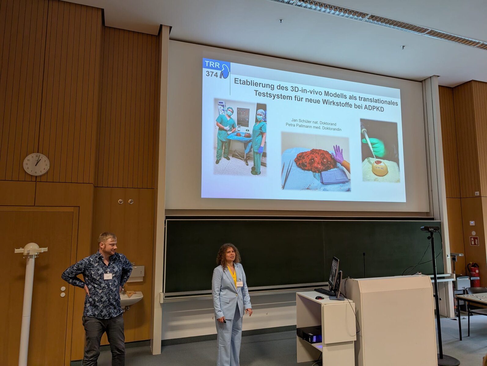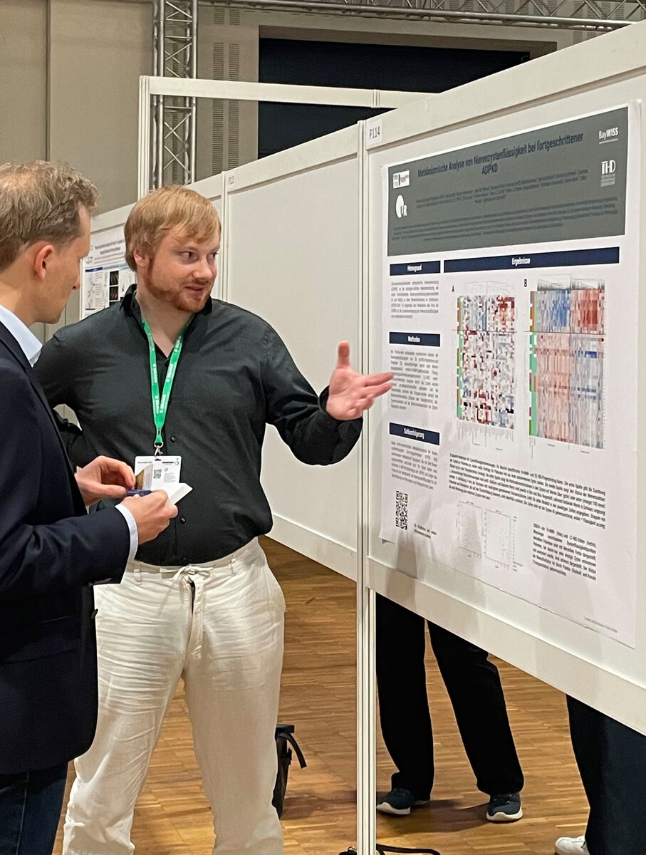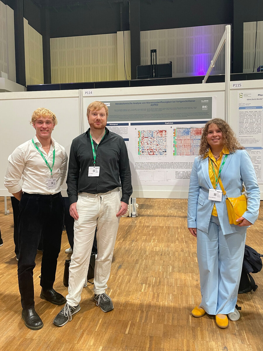 An dem Wochenende vom 11.07.-12.07.2025 fand in Regensburg die Junge Niere statt. Nach einem interessanten Eröffnungsvortrag von Prof. Dr. Eckhard Wolf zum Thema Xenotransplantation durften am Samstag junge Nachwuchswissenschaftler und -wissenschaftlerinnen ihre Projekte rund um die Nierenforschung vorstellen. Unter anderen auch Petra Pallmann und Jan Schüler aus unserem Lehrstuhl, die ihr Projekt mit dem Titel "Etablierung des 3D-in-vivo Modells als translationales Testsystem für neue Wirkstoffe bei ADPKD" präsentierten. Die Junge Niere bietet jedes Jahr ein Forum für junge forschende aus der Nephrologie und wird von der Deutschen Gesellschaft für Nephrologie (DGfN) unterstützt.