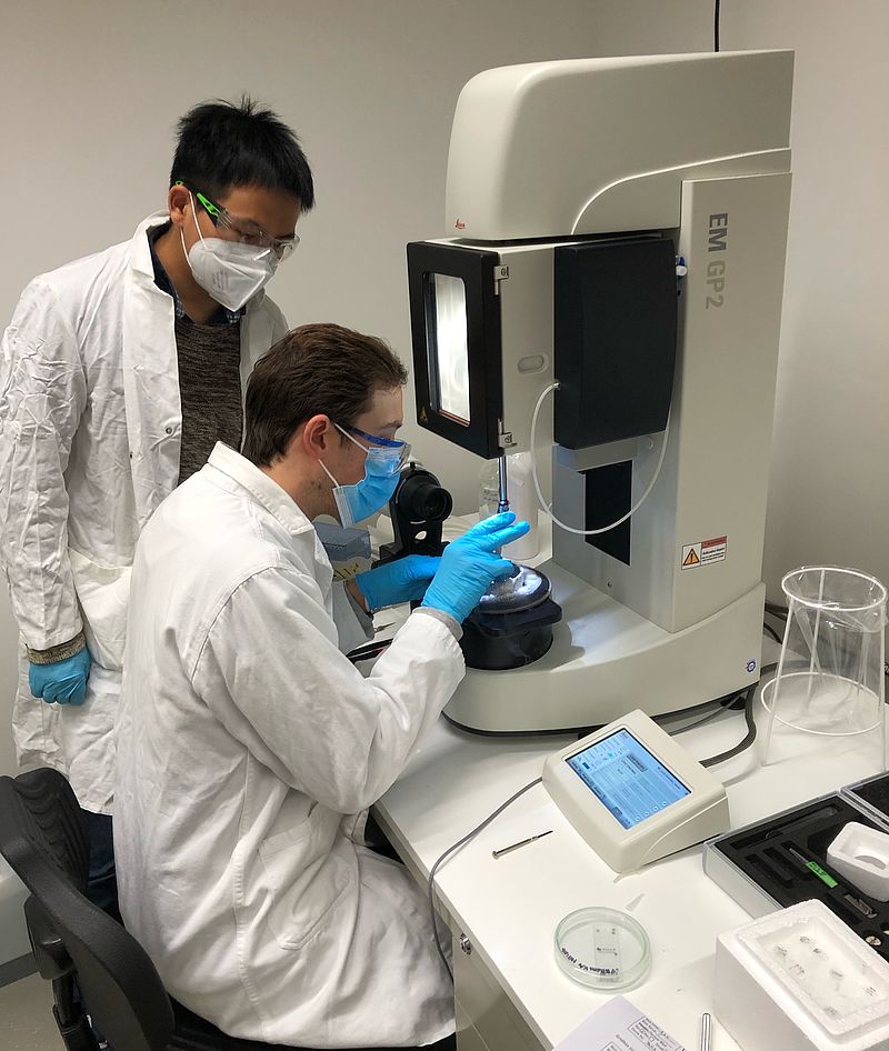 The Leica GP2 (externer Link, öffnet neues Fenster) and Vitrobot Mark IV (externer Link, öffnet neues Fenster) are both popular automated vitrification systems used for cryo-electron microscopy (cryo-EM) sample preparation. Both systems user-friendly interface and intuitive design. It offers a straightforward workflow and easy navigation, making it accessible to users with varying levels of expertise.
