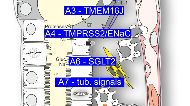 In seiner ersten Förderperiode untersuchte der SFB 1350 die vielfältigen Funktionen und Wechselwirkungen von tubulären Epithelien und interstitiellen Zellen. Wir haben wichtige Erkenntnisse über Pathomechanismen bei mehreren monogenen Erkrankungen gewonnen, genetische Risikofaktoren für multifaktorielle Nierenerkrankungen identifiziert, die Funktion und Fehlfunktion interstitieller Zellen, interstitielle Entzündungen und Fibrose untersucht und das Schadensgedächtnis sowie die Folgen von Hypoxie erforscht. So hat ein Team von Forschern die Bedeutung von TMEM16A (Ano1)-Chloridkanälen für das Zystenwachstum entdeckt, den Mechanismus in Tiermodellen bestätigt, die Wirksamkeit von Inhibitoren dieser Kanäle nachgewiesen und schließlich ein ex vivo Modell etabliert, um die Wirkungen in menschlichem zystischem Nierengewebe zu testen und Strategien für die Behandlung von Patienten mit polyzystischen Nieren zu entwickeln.