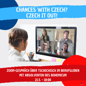 Am 1. Juni um 18 Uhr lädt das Bohemicum zu einem Zoom-Treffen mit Absolvent:innen ein, bei dem Studieninteressierte in unmittelbarer Form viele Eindrücke und Erfahrungen aus unterschiedlichen Perspektiven gewinnen. Nutzen Sie die Chance! Mehr Info hier. Anmeldung per Email hier.
