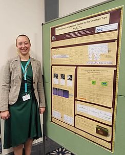 Nachdem am Montag, den 27.03.2023 ein deutschlandweiter Streik des Nah- und Fernverkehrs stattfand und die 31. Jahrestagung der Deutschen Gesellschaft für Kristallographie in Frankfurt am Main startete, ging es spontan mit dem Auto statt mit dem ICE von Regensburg nach Frankfurt. Auf Grund dessen war die Tagung am Montag noch etwas spärlich besucht, was sich aber in den darauffolgenden Tagen änderte. Nach einem Tag voller spannender Vorträge endete der Dienstag mit der ersten Postersession, in welcher wir unsere Poster präsentierten. Am Mittwoch hielt Steffi einen Vortrag in der Inorganic Structural Chemistry Session. Der Tag wurde mit dem Social Evening in Schuch's Restaurant abgerundet. Am letzten Tagungstag wurde Melissa für ihr Poster zum Thema "Investigating the Role of Alkali Metals in the Structure Type K14Cd9Tl21" einen von drei Posterpreisen überreicht. Dabei erhielt sie einen Geldpreis von 200 € und einen riesigen Blumenstrauß. Am Nachmittag besuchten wir Rigaku während einer Lab Tour in Neu-Isenburg bevor es mit dem ICE wieder zurück nach Regensurg ging.