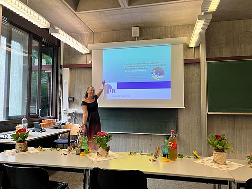 Am 25.07.2025 hat unsere wertgeschätzte Kollegin und Freundin Vanessa F. Schwinghammer ihre nervenaufreibende Promotionsprüfung mit großem Erfolg abgelegt. Neben den Prüfern Steffi, Herr Korber und Herr Tepner und Vorsitz Herr Müller waren auch zahlreiche Zuhörende und Freunde (UR, LMU) an ihrem großen Tag dabei. Wie am Bild (s. unten) zu sehen, hat sie (typisch Vanessa) die Messlatte für Dekoration bei Verteidigungen ein großes Stück höher gelegt. Leider müssen wir ab 1. August auf sie verzichten und verlieren damit ein wertvolles und hochgeschätztes Mitglied unseres Tripel-Arbeitskreises. Wir gratulieren unserer Vanessa herzlich und wünschen ihr für ihren weiteren Werdegang alles Gute.
