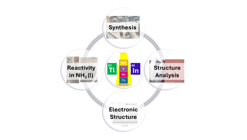 Ziel ist es, die Strukturchemie der Elemente Thallium und Indium in formal negativen Oxidationsstufen zu erweitern. Dabei soll besonderer Fokus auf die Rolle der Alkalimetalle bei der Strukturbildung gelegt werden. Bei der Synthese der Verbindungen verwenden wir deshalb meist mehrere Alkalimetalle gleichzeitig. Die Kristallstrukturen ermöglichen genauere Einblicke zu deren Beitrag bei der Strukturbildung. Mit diesem Trick war es bereits möglich, eine Reihe an neuen, elektronenpräzisen Zintl-Phasen herzustellen, die Cluster enthalten. Lösungsexperimente in flüssigem Ammoniak sollen Parallelen und/oder Unterschiede zu der gut-etablierten Lösungschemie der Gruppen 14 und 15 in diesem Lösungsmittel erarbeitet werden.