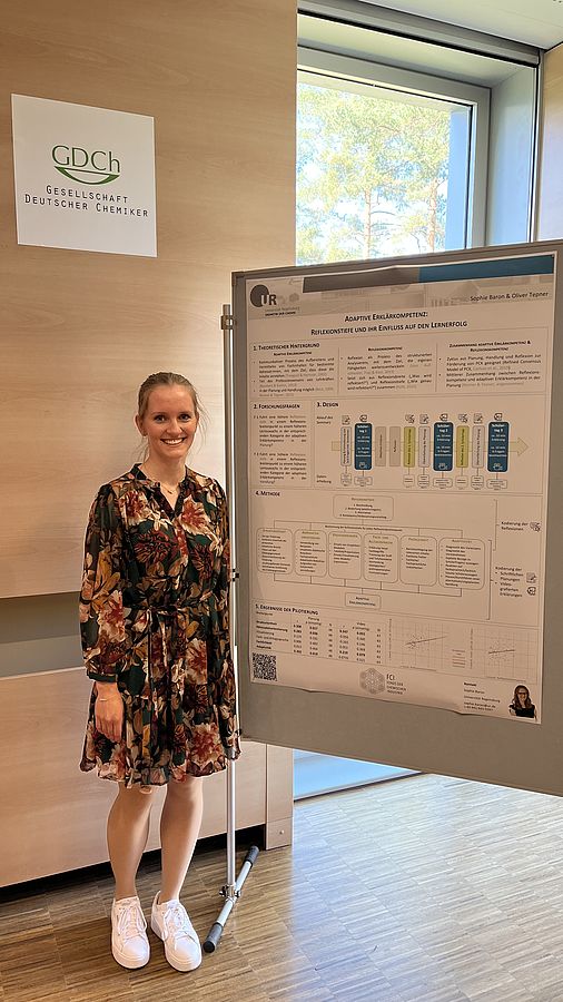 Sophie Baron wurde auf der Jahrestagung 2025 der GDCh-Fachgruppe Chemieunterricht für die Präsentation ihres Forschungs- und Lehrprojekts zum adaptiven Erklären mit einem der insgesamt drei begehrten Posterpreise ausgezeichnet. Sophie Baron ist wissenschaftliche Mitarbeiterin der Chemiedidaktik der Universität Regensburg und arbeitet seit 2024 an der Optimierung und Evaluation eines Seminarkonzepts zur Entwicklung der adaptiven Erklärkompetenz im Themenfeld Säure-Base-Chemie durch die Reflexion von Unterrichtsvideografien. Zuvor hat sie an der Universität Regensburg die Fächer Chemie und Mathematik für das gymnasiale Lehramt studiert und das 1. Staatsexamen absolviert.