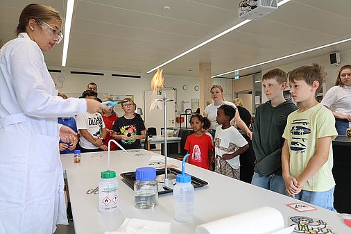 Die Chemiedidaktik war dabei wieder mit spannenden Live-Experimenten zum Thema brennen - verbrennen - brandfördernd vertreten.