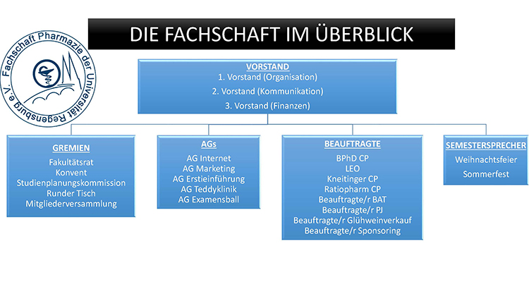 Zu unseren Daueraufgaben gehört neben der Vereinsorganisation mit Sitzungen etc. die Pflege der studentischen Lernhilfen, die Vermittlung zwischen Lehrenden und Studierenden, die Kontaktpflege zu Sponsoren und das Bereitstellen von Stellenangeboten. Außerdem sind wir Ansprechpartner für alle Interessen der Pharmaziestudierenden und vertreten diese in den Gremien der Fakultät.