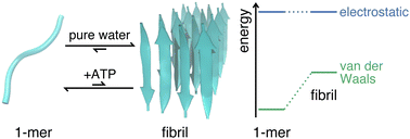 Recent experiments have revealed that adenosine triphosphate (ATP) suppresses the fibrillation of amyloid peptides – a process closely linked to neurodegenerative diseases such as Alzheimer's and Parkinson's. Apart from the adsorption of ATP onto amyloid peptides, the molecular understanding is still limited, leaving the underlying mechanism for the fibrillation suppression by ATP largely unclear, especially in regards to the molecular energetics. Here we provide an explanation at the molecular scale by quantifying the free energies using all-atom molecular dynamics simulations. We found that the changes of the free energies due to the addition of ATP lead to a significant equilibrium shift towards monomeric peptides in agreement with experiments. Despite ATP being a highly charged species, the decomposition of the free energies reveals that the van der Waals interactions with the peptide are decisive in determining the relative stabilization of the monomeric state. While the phosphate moiety exhibits strong electrostatic interactions, the compensation by the water solvent results in a minor, overall Coulomb contribution. Our quantitative analysis of the free energies identifies which intermolecular interactions are responsible for the suppression of the amyloid fibril formation by ATP and offers a promising method to analyze the roles of similarly complex cosolvents in aggregation processes.