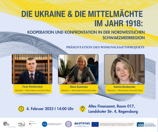 Veranstalter: Denkraum Ukraine, gefördert vom DAAD aus Mitteln des Auswärtigen Amtes, Universität Regensburg, Nationale I. I. Metschnykow Universität Odesa, Eurizon-Programm im Rahmen der Finanzhilfevereinbarung Nr. 871072 des Forschungs- und Innovationsprogramms Horizon 2020 der Europäischen Union, Leibniz Institut für Ost- und Südosteuropaforschung.