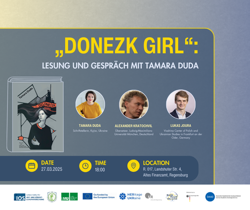 An diesem Abend werden eine besondere Lesung und Diskussion mit der ukrainischen Schriftstellerin Tamara Duda und Übersetzern Alexander Kratochvil und Lukas Joura stattfinden. Im Rahmen der Winterschule „Ukraine’s Cultural Heritage: EU Diplomacy and Regional Perspectives“ an der Universität Regensburg wird aus dem eindrucksvollen Werk „Donezk Girl“ gelesen. Das Buch bietet eine literarische Auseinandersetzung mit dem Beginn des Krieges im Donbas im Jahr 2014 und beleuchtet die Schicksale und Erfahrungen der Menschen in der Region.