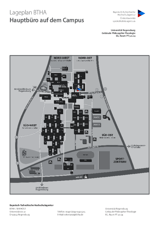 Main office on campus ⇒ Room PT 3.0.24, Gebäude Philosophie-Theologie Second office on Sedanstraße ⇒ Room S.022, in der Sedanstraße 1, 93055 Regensburg