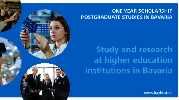 For the the academic year 2026/27, the Free State of Bavaria will once again be awarding one-year scholarships to graduates (with appropriate citizenship) from Bulgaria, Croatia, Czechia, Hungary, Poland, Romania, Russia, Serbia, Slovakia and Ukraine. The scholarship is intended to finance postgraduate studies (i.e. Master's programs), PhDs or one-year research stays at a state or state-funded higher education institution in Bavaria. The one-year scholarship can generally be extended twice for up to 3 years. The scholarship is paid out monthly €992 and amounts to €11.904 per year. Students with at least one child receive €1.152 per month, which amounts to €13.824 per year.
