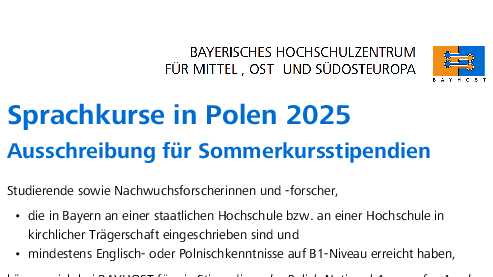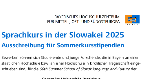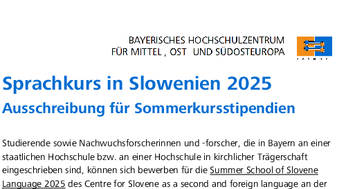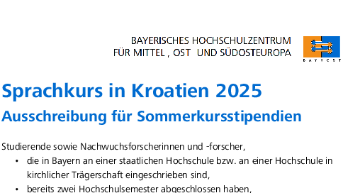 Bulgaria, Croatia, Czechia, Poland, Romania, Serbia, Slovakia, Slovenia and Hungary offer scholarships for summer language courses at their universities. Students and young scientists who are enrolled or conducting research at a state university or a church-run university in Bavaria are eligible to apply.