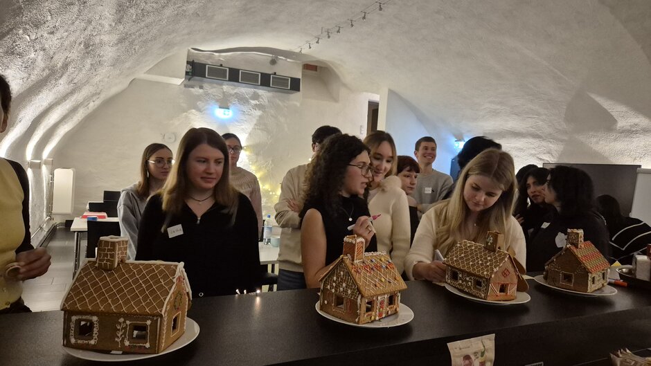 The students formed teams to build and decorate gingerbread houses, took part in an entertaining “get-to-know-you” game and had interesting conversations while practising their German skills with exciting discussion questions.
