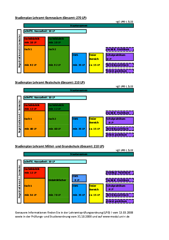 Diese Übersicht wurde mit großer Sorgfalt zusammengestellt; rechtliche Verbindlichkeit hat jedoch lediglich der Originaltext der betreffenden Prüfungsordnung (hier: LPO I).