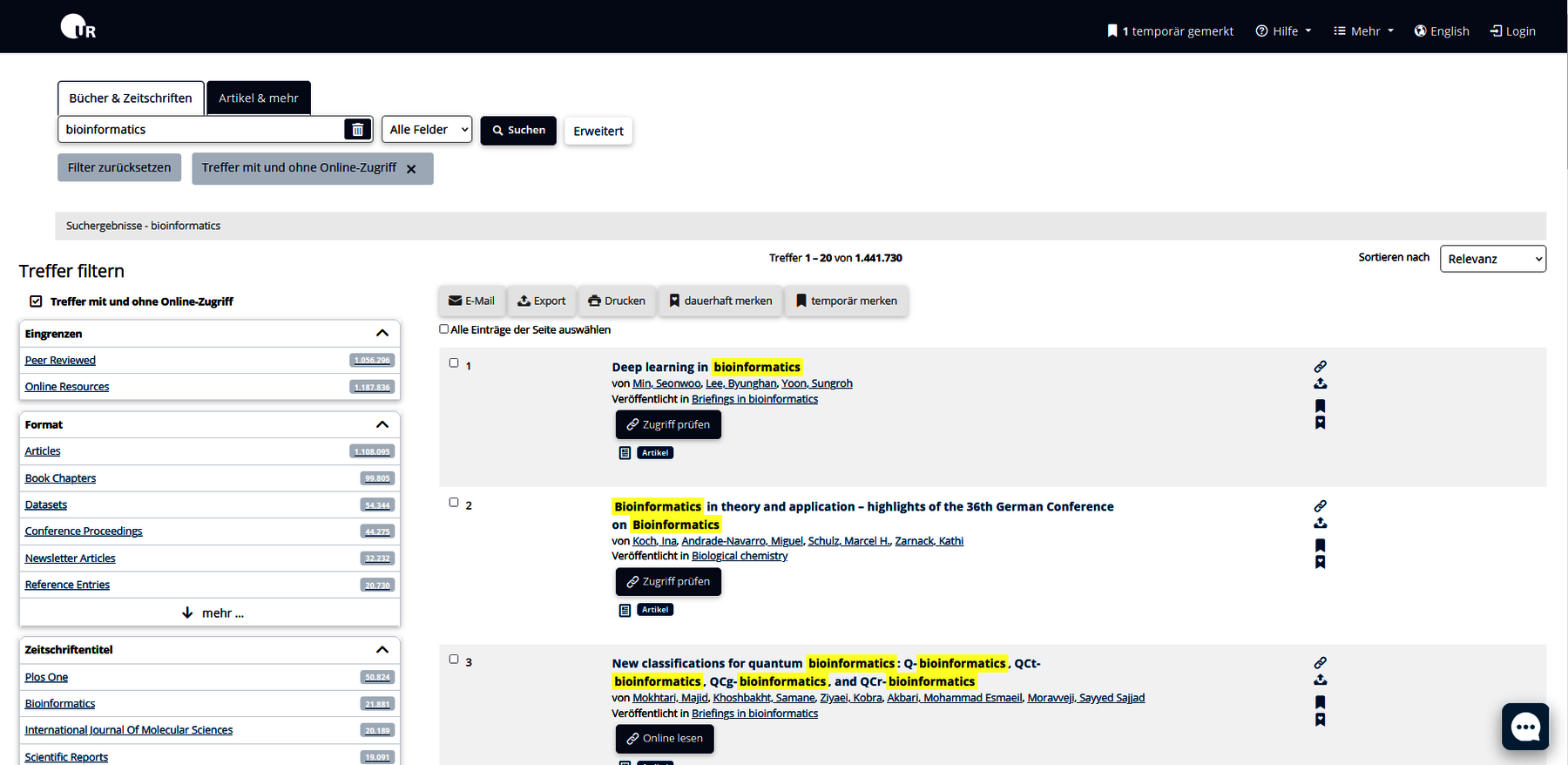 The sources were individually checked for scientific accuracy by specialist staff at Bielefeld University Library. You can access the full texts of about 60% of the indexed records for free (Open Access).