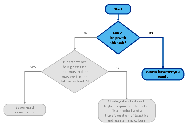 If AI cannot be applied in order to support the examination performance, this has no effect on the examination format. The examination format can then be freely chosen.