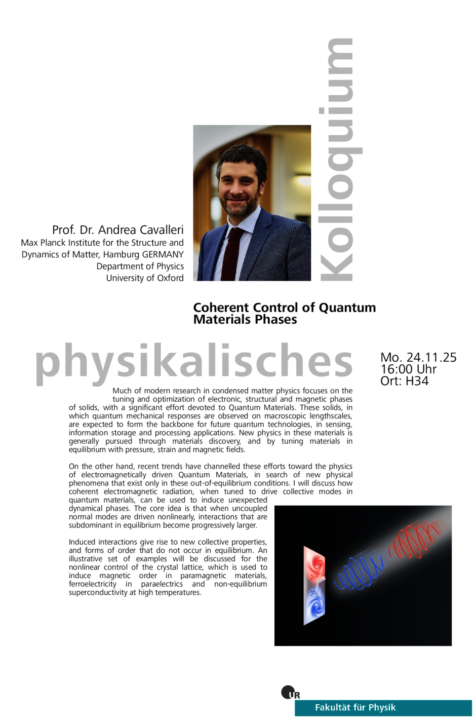 - Prof Dr Andrea Cavalleri, Max Planck Institute for the Structure and Dynamics of Matter, Hamburg, Department of Physics, University of Oxford