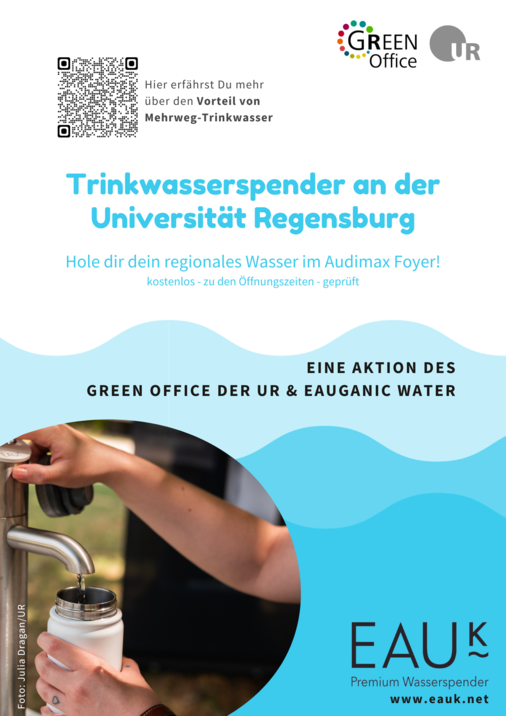 - The installation of drinking water dispensers was part of the demands of the "Sustainability Position Paper" by the Sustainability Network, the Student Speakers' Council and other groups. The position paper summarised urgently needed measures for a future-proof, sustainable development for our university. It was intended to inspire change and show that sustainability can also be implemented and practised at our university.