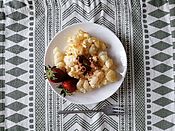 4. Die Mischung mit den abgekühlten Nudeln vermengen.
