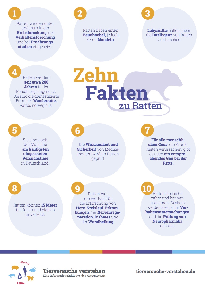 Ratten werden in der biomedizinischen Forschung eingesetzt, weil viele komplexe Körperfunktionen nur im lebenden Organismus zuverlässig untersucht werden können – etwa Wechselwirkungen zwischen Organen, Nerven- und Hormonsystem, Immunsystem und Stoffwechsel. Ratten sind außerdem seit langem etablierte Modelltiere; für viele Fragestellungen (z. B. in Physiologie, Verhaltensforschung, Pharmakologie und Toxikologie) liegen umfangreiche Vergleichsdaten und erprobte Untersuchungsmethoden vor.