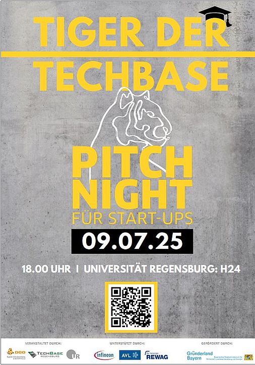 Am 09. Juli 2025 heißt es wieder: Tiger der TechBase – die Pitch-Night für alle, die Innovation lieben und Start-up-Spirit live erleben wollen. Im Vielberth-Gebäude der Uni Regensburg (H24) stehen Start-ups im Rampenlicht. Sechs Start-ups präsentieren ihre Ideen vor einer hochkarätigen und erfahrenen Jury – mit dem Ziel, die begehrte Tiger-Trophäe zu gewinnen.