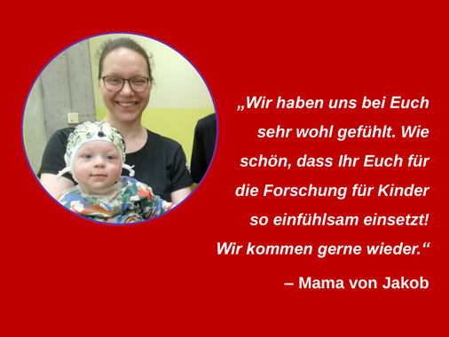 Unsere Erhebungen bergen keinerlei Risiken für Sie und Ihr Kind. Die von uns angewendeten Methoden sind Standardverfahren in der Entwicklungspsychologie und werden ausschließlich von Psychologen/innen und geschulten Studienleitern/innen durchgeführt. Sie sind während der Studien jederzeit mit ihrem Kind zusammen.
