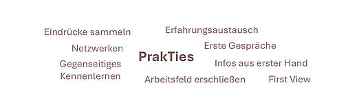 Mit den PrakTies verfolgen wir das primäre Ziel des Netzwerkens: Studierende, die kürzlich ihr Pflichtpraktikum abgeschlossen haben, berichten von ihren Erfahrungen; Verschiedene Unternehmen, die das vielfältige Berufsfeld der Pädagogik repräsentieren, stellen sich und ihre Jobmöglichkeiten vor; Studierende auf Praktikums- oder Jobsuche informieren sich über offene Stellen und Berufsinhalte, die zu ihren Interessen und Fähigkeiten passen. Auf diese Weise wird ein persönliches Kennenlernen und ein offener Austausch ermöglicht, der sowohl für Unternehmensvertreterinnen und -vertreter als auch Studierende auf Jobsuche außerordentlich wertvoll sein kann.
