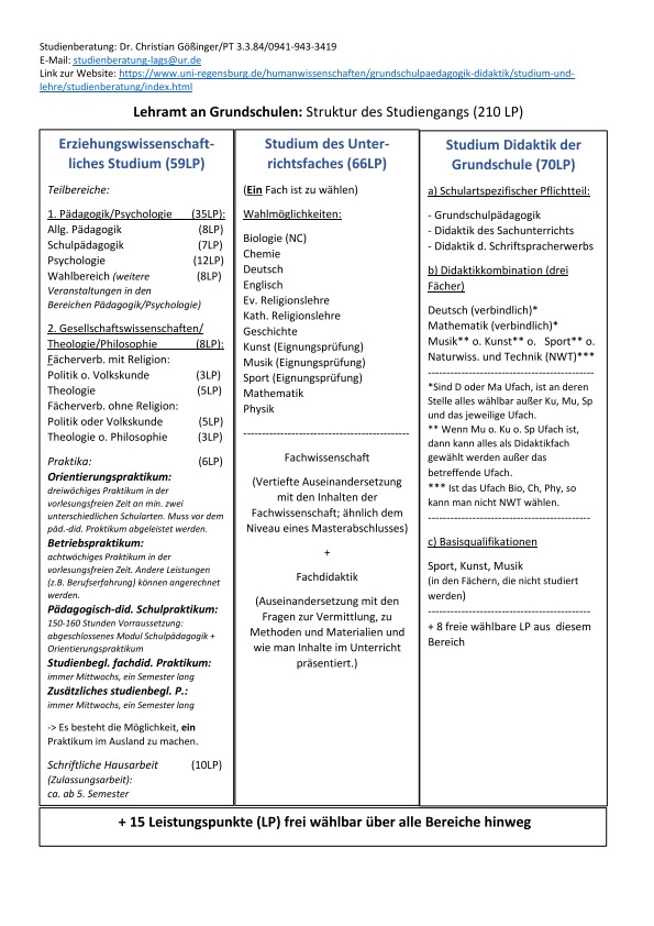 ACHTUNG: Diese Übersicht ist zum Teil ein Richtwert. Gegebenenfalls benötigen einige Didaktikfächer oder ähnliches mehr Leistungspunkte als im Schema angegeben. Das ist aber kein Drama. Die Punkte verschieben sich automatisch in den Wahlbereich.