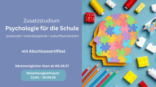 Das Zusatzstudium "Psychologie für die Schule" richtet sich ausschließlich an Studierende aller Lehrämter der Universität Regensburg und vermittelt fundiertes psychologisches Wissen mit starkem Praxisbezug. In drei Modulen werden zentrale Themen der Gesundheits-, Sozial-, Arbeits- und klinischen Psychologie mit Blick auf Lehrkräfte, Schüler:innen, sowie das System Schule behandelt.