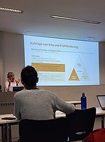Johanna Langenhoff (Leibniz Universität Hannover) hat im Rahmen einer Forschungswerkstatt unter der Moderation von Prof. Dr. Sina-Mareen Köhler ihre Dissertationsstudie "Erfahrungen adoleszenter Schüler*innen mit der sozialrechtlichen Maßnahme der Schulassistenz" vorgestellt und gemeinsam mit ihrer Betreuerin Prof. Dr. Bettina Lindmeier (Leibniz Universität Hannover) sowie interessiertem Fachpublikum eigenes Material gemeinsam interpretiert und diskutiert.