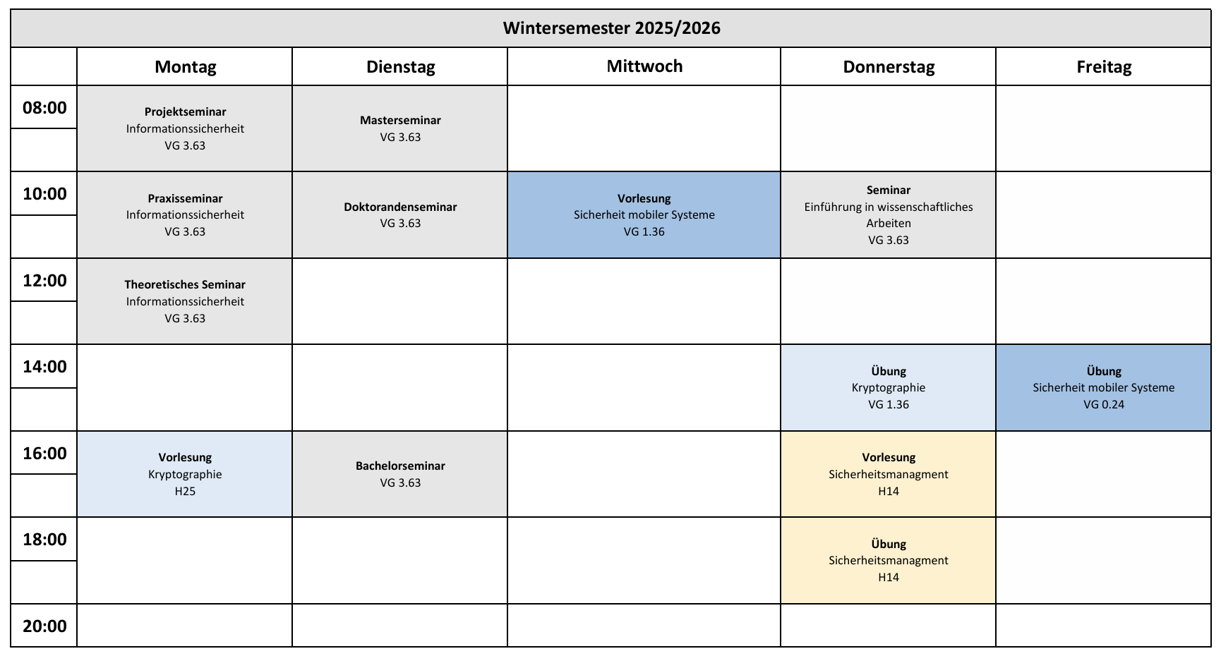 Den gesamten Stundenplan des Lehrstuhls findet Ihr hier (öffnet neues Fenster).