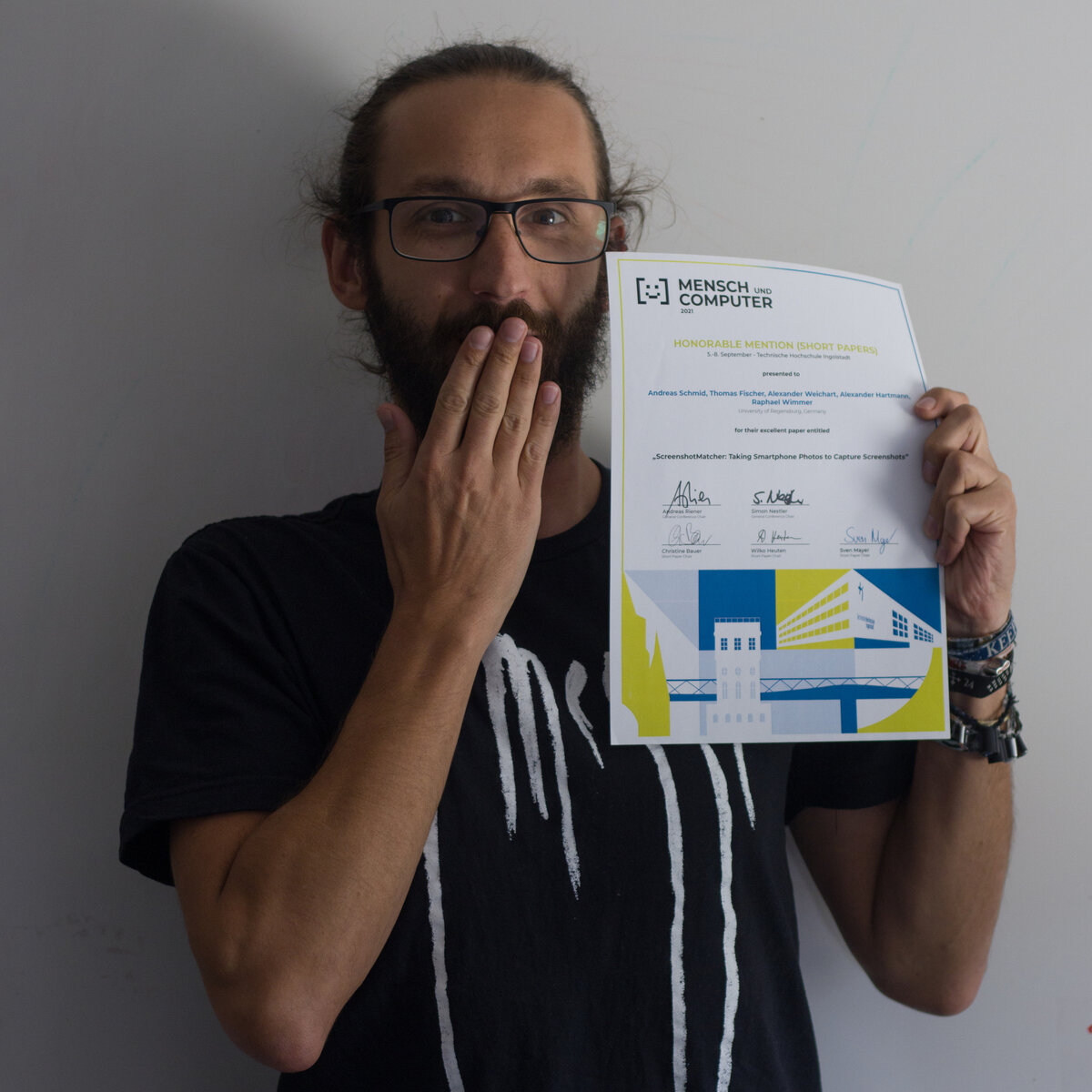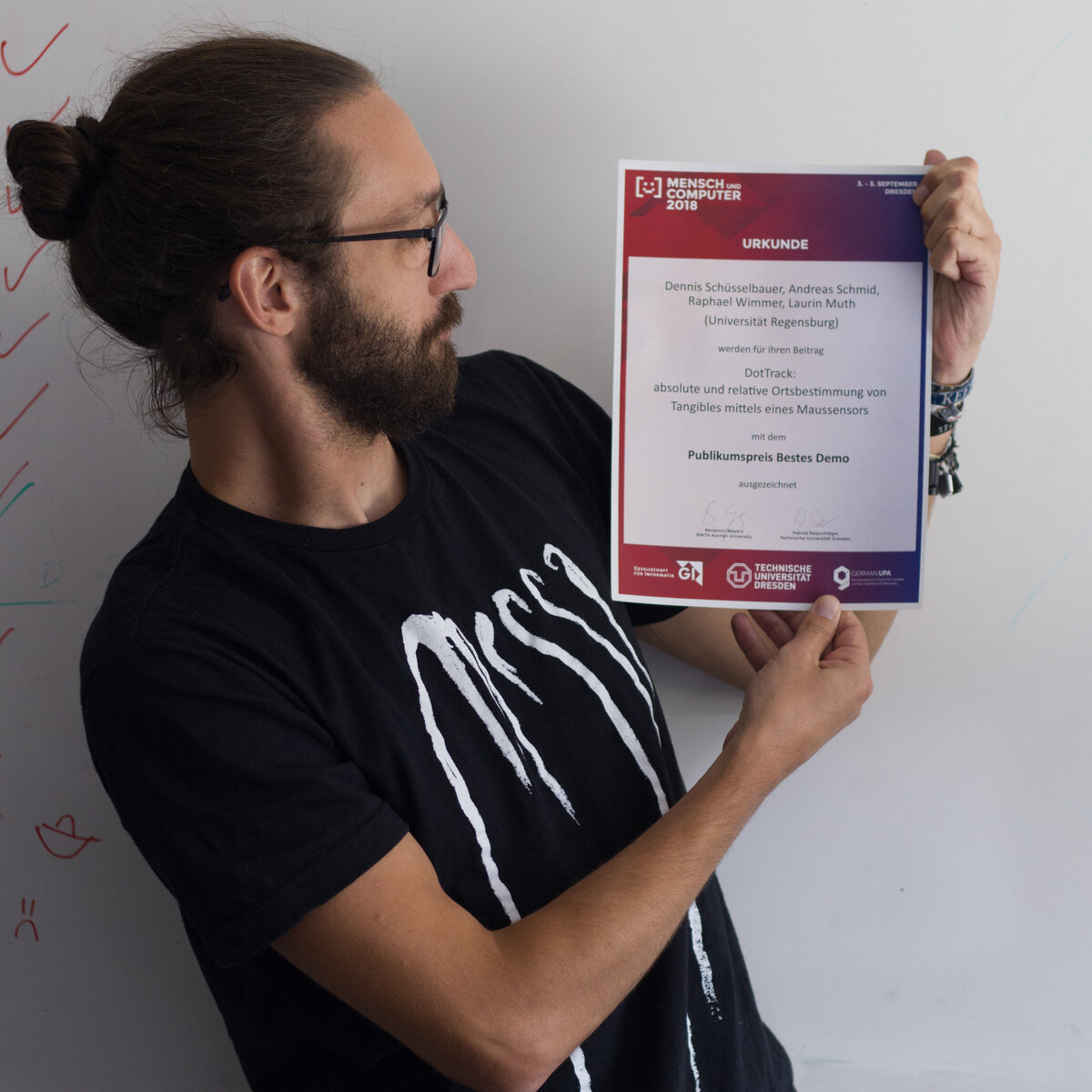 Wissenschaftlicher Mitarbeiter am Lehrstuhl für Medieninformatik der Universität Regensburg und in der Nachwuchsforschungsgruppe "Physical-Digital Affordances"