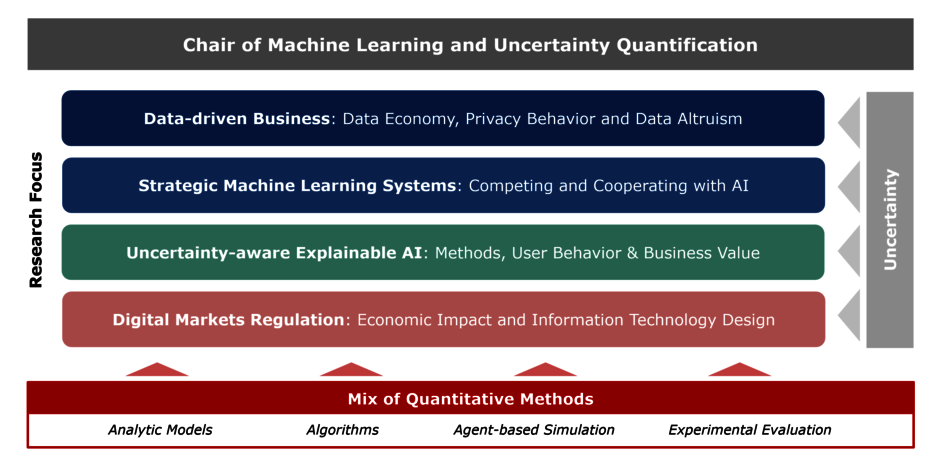 Das Forschungsgebiet des Lehrstuhls ist im Spannungsfeld zwischen informationstechnischer Machbarkeit, ökonomischer Wertschöpfung und rechtlichen Rahmenbedingungen inhärent interdisziplinär. Zugleich hat das Gebiet auf Grund der weitreichenden Implikationen der künstlichen Intelligenz und der damit einhergehenden fundamentalen Transformationsprozesse eine starke gesellschaftliche Relevanz.