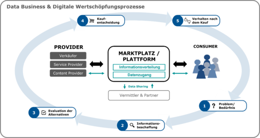 Heutzutage stehen immense Datenmengen zur Verfügung, die gleichermaßen für Organisationen und Konsumenten eine wertvolle Entscheidungsgrundlage bieten. Beide Akteure stellen in einem digitalen Marktplatz dynamisch Daten zur Verfügung und profitieren dabei gleichzeitig von den vorhandenen Informationen über Produkte und Angebote, um optimale Entscheidungen zu treffen. Im Rahmen des digitalen Kaufprozesses interagieren die Akteure in mehreren Phasen, beginnend mit der Erfassung von Kundenbedürfnissen, über die eigentliche Kaufentscheidung bis hin zum Kundenfeedback in Form von Bewertungen und Reviews. Daher liegt es im gemeinsamen Interesse aller Marktteilnehmer, diese datengetriebenen Prozesse in bestmöglicher Weise zu gestalten. Die Betreiber digitaler Plattformen und Marktplätze können dabei den Datenzugang und die Informationen, die den Akteuren zur Verfügung stehen, gezielt gestalten und steuern. Dadurch nehmen sie strategischen Einfluss auf das Marktgeschehen und die Marktergebnisse. Zugleich werden auch Daten selbst zu Wirtschaftsgütern, die auf vielfältige Art einen Beitrag zur betrieblichen Wertschöpfung leisten. Als solche können sie zudem zwischen verschiedenen Organisationen ausgetauscht und auf digitalen Marktplätzen gehandelt werden.