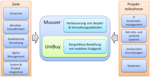 Studenten an der Universität Siegen nutzen täglich diverse Bezahl- und Verwaltungsfunktionen. Diese reichen von der Nutzung der Bibliothek über die Anmeldung bei Prüfungen oder Seminaren bis hin zu Bezahlvorgängen bei Fotokopiergeräten oder der Mensa. Diese Abläufe zu vereinfachen sowie möglichst effektiv und effizient für Studenten und die Verwaltung zu gestalten ist das Ziel des MUUVER- Projektes bei dem Wirtschaftsinformatik und Informatik kooperieren. Die als Alternative (nicht als Ersatz bestehender Abläufe) zu entwickelnde Infrastruktur soll auf Basis unterschiedlicher mobiler Endgeräte - ohne zusätzliche Ausweise oder Karten - Arbeitsabläufe integrieren und verbessern sowie neue Abläufe und Anwendungen anbieten, die eine möglichst intuitive und sichere Abwicklung der Vorgänge ermöglichen. Für eine möglichst optimale Umsetzung und größt- mögliche Akzeptanz für alle genannten Einsatzmöglichkeiten sollen insbesondere folgende Bereiche adressiert werden: 1) Sicherheit, 2) Benutzerfreundlichkeit, 3) Studentische Vernetzung, 4) Agiles Management, 5) System- & Prozessintegration.