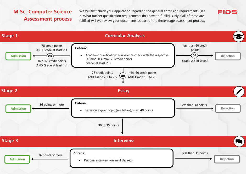 Ein Essay ist die Voraussetzung für das Erreichen der zweiten Stufe des Eignungsfeststellungsverfahrens. Wenn in diesem Fall kein Essay eingereicht wird, muss die Bewerbung abgelehnt werden.
