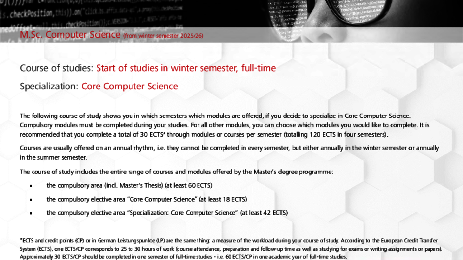 Die Studien- und Prüfungsordnung des M.Sc. Computer Science informiert Dich über die rechtlichen Rahmenbedingungen Deines Studiums.
